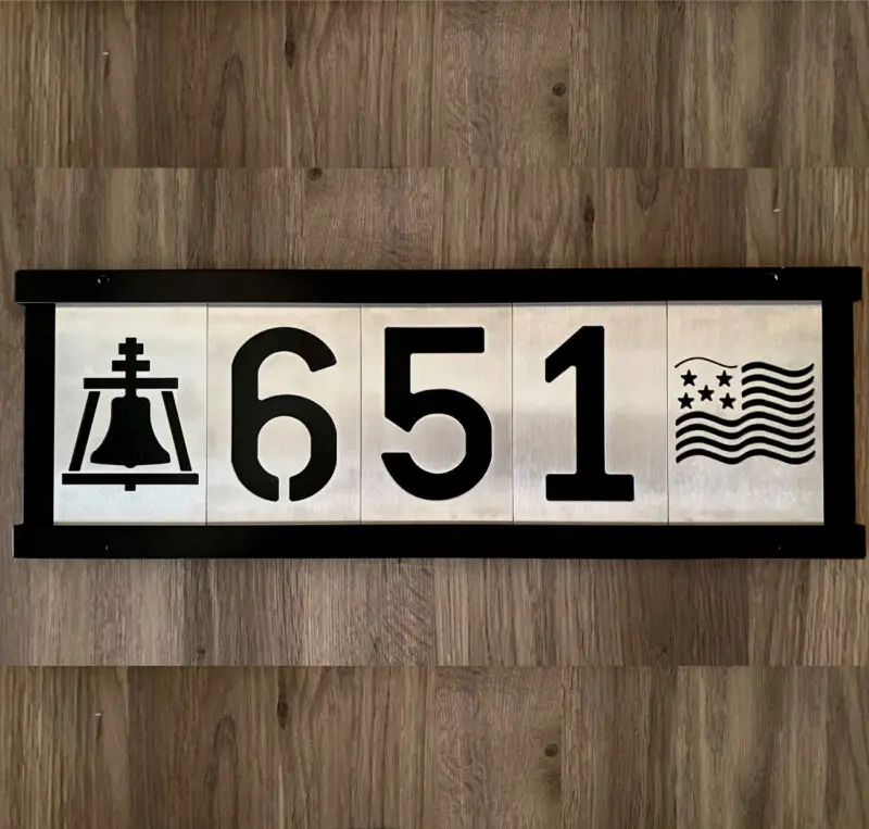 This Modern and sleek design combines popular architectural styling with durable Stainless-Steel, providing the option to add your own personal flare to this unique Address Sign. Change Stainless Steel Tiles whenever and however you like! Includes:- (1) Powder Coated Black Frame – Size: 19″ x 6.5″